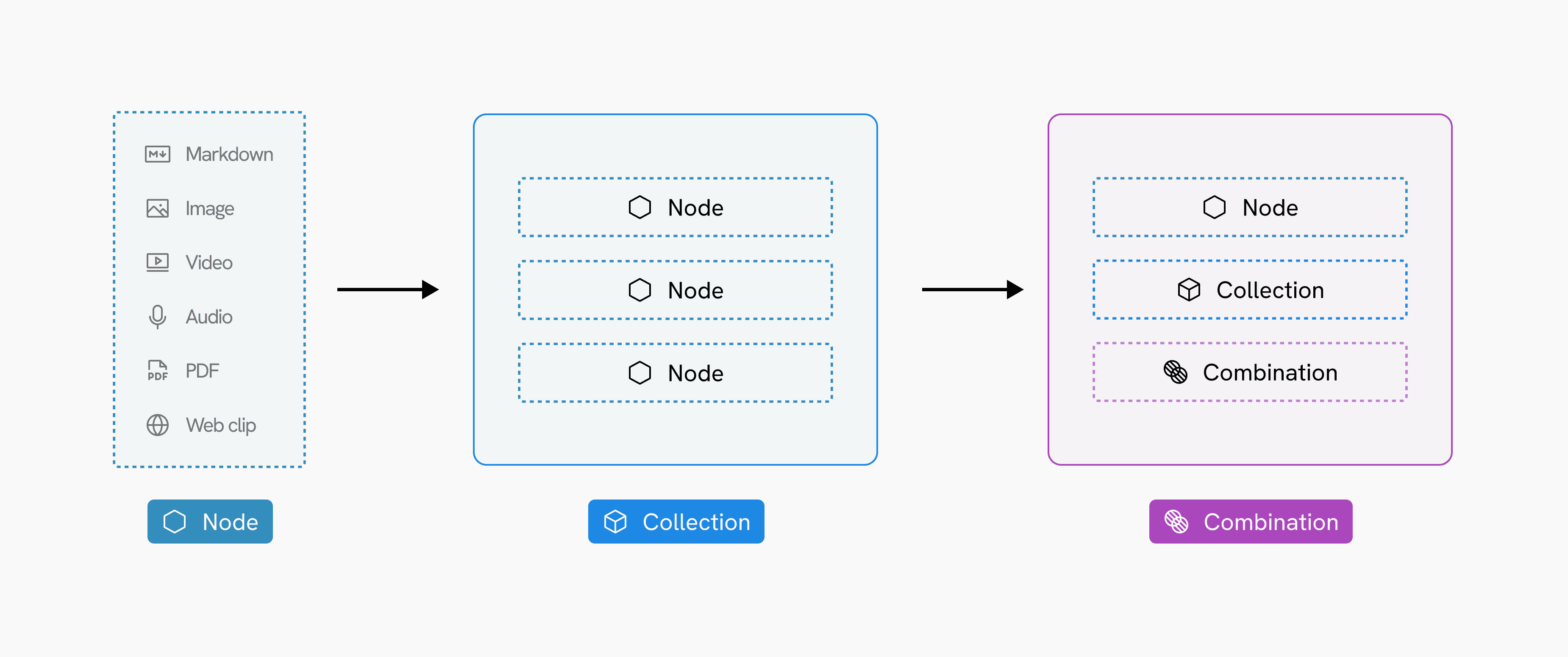 The process of capturing information can be cumbersome, and retrieval often falls short. However, the biggest challenge lies in curation; it can become a tedious task or be confined within rigid systems. This realization prompted us to rethink the entire structure of digital memory. Our exploration led us to develop the NCCL system architecture - a flexible framework built around four layers: Nodes, Collections, Combinations, and Linking